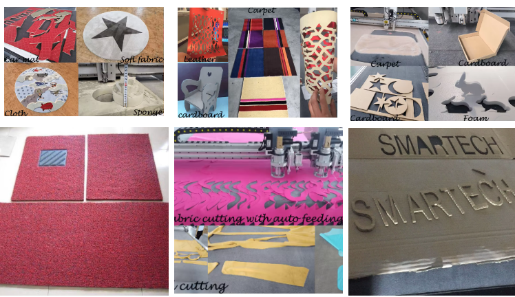 04. Wide Applications :This digital leather cutting machine can cut textile, fabric, leather, paper, carton, PU, fiber,